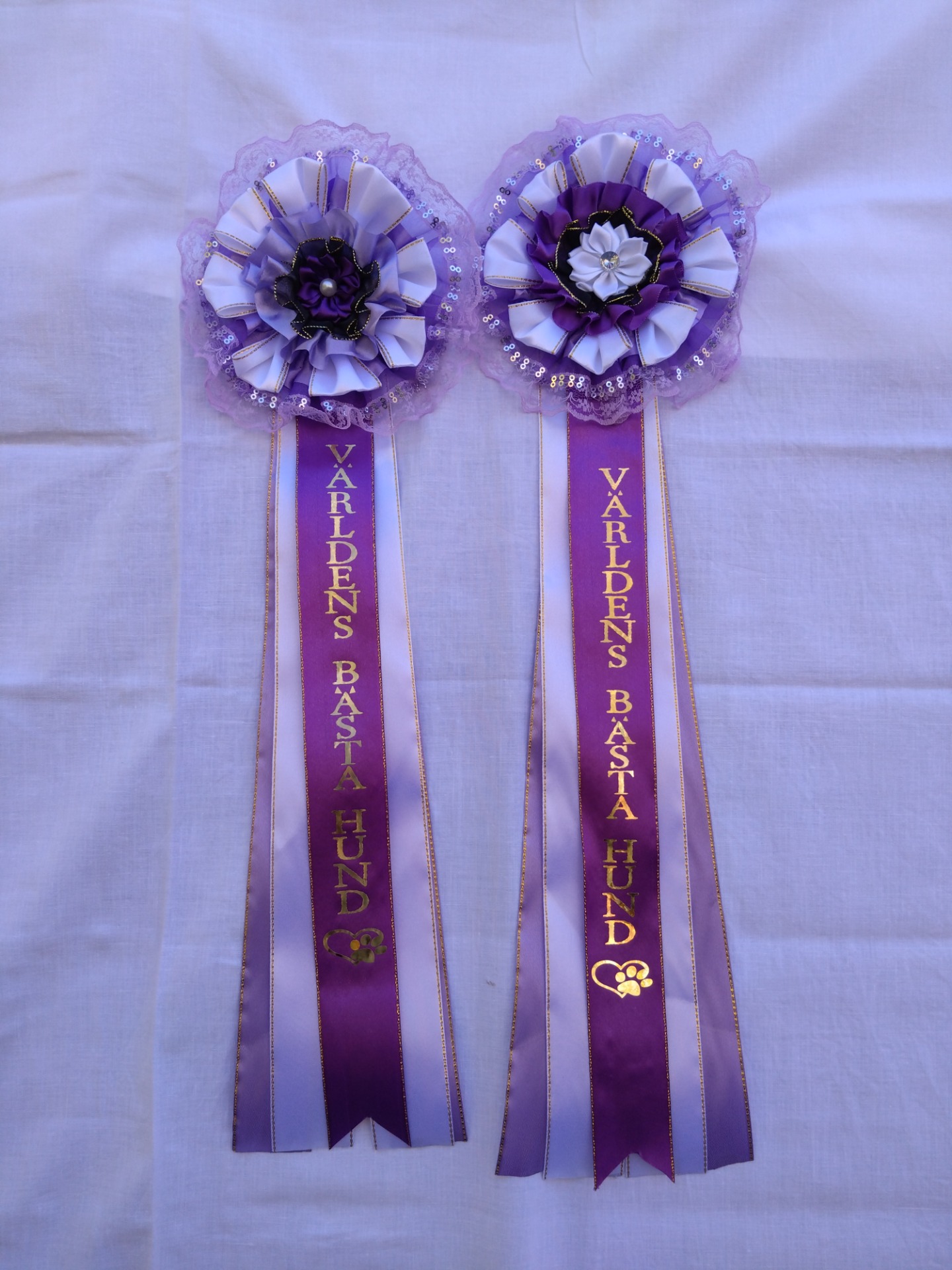 En stor fin rosett till Världens Bästa Hund, vem har väl inte det.ca 53 cm lång och huvudet är ca 16 cm i diameter. Viss variation som färg på mittblomma förekommer.