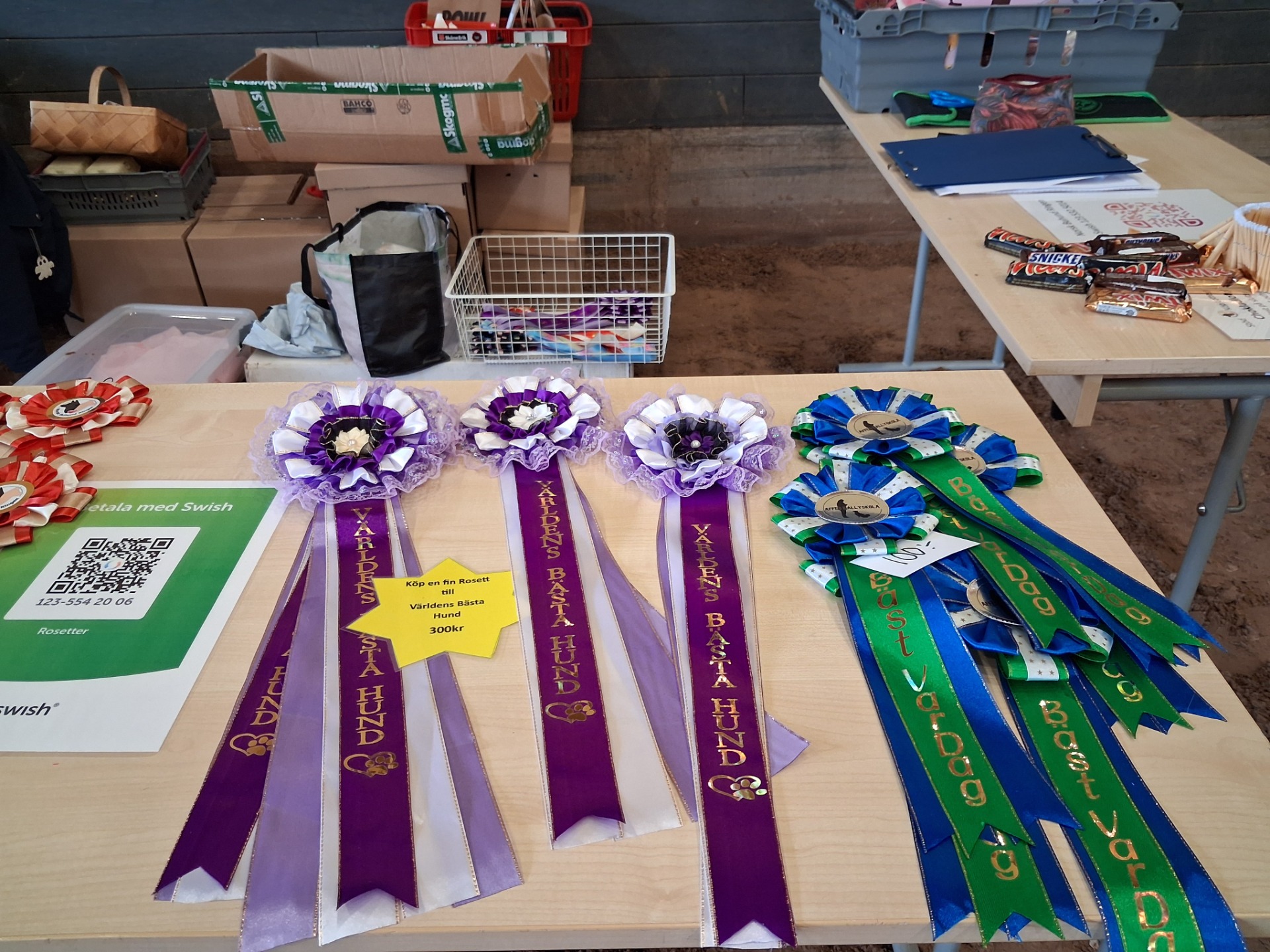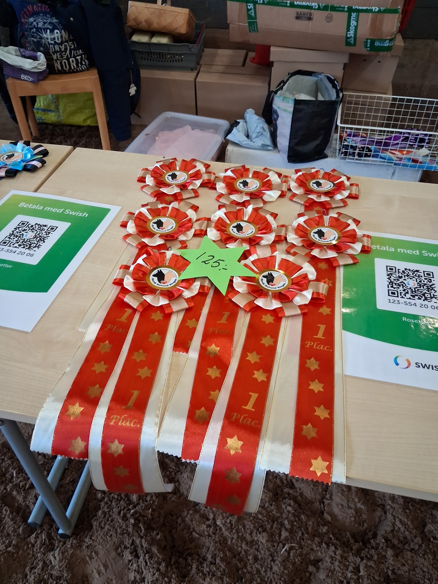 Våra färdiga rosetter kommer att finnas som lagervara och vi tillverkar även rosetter på beställning. De modeller som vi har kan man även beställa i olika färger och egen text på bandet
